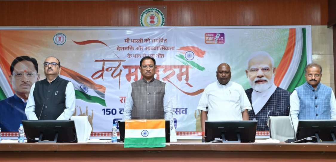 (छत्तीसगढ़ प्रयाग न्यूज) :– ‘वंदे मातरम्’ राष्ट्रगीत की 150वीं वर्षगांठ के अवसर पर देशभर में विविध कार्यक्रमों का आयोजन किया गया। इस ऐतिहासिक दिन को छत्तीसगढ़ में भी बड़े उत्साह और गर्व के साथ मनाया गया। मुख्यमंत्री विष्णु देव साय ने मंत्रालय महानदी भवन में वरिष्ठ अधिकारियों एवं कर्मचारियों के साथ सामूहिक रूप से ‘वंदे मातरम्’ का गायन किया। इस अवसर पर सभी ने “वंदे मातरम्” के उद्घोष के साथ आज़ादी की राष्ट्रीय चेतना का पुण्य स्मरण किया और अमर बलिदानियों को नमन किया।