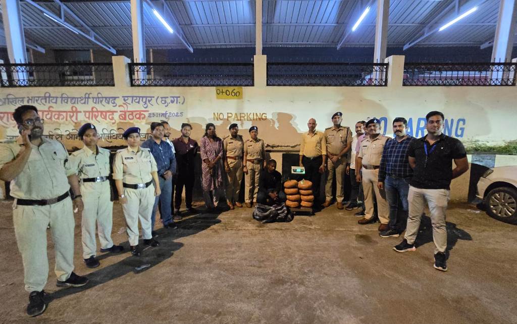 जानकारी के अनुसार सचिव सह आबकारी आयुक्त आर. शंगीता, कलेक्टर डॉ गौरव सिंह एवं प्रभारी उपायुक्त आबकारी रायपुर राजेश शर्मा के मार्गदर्शन में संयुक्त टीम ने कार्यवाही की। टीम ने स्टेशन परिसर में मंदिर के पास एक संदिग्ध व्यक्ति मिथुन डिगल (पिता-लारा डिगल) की तलाशी ली। उसके कब्जे से दो ट्रैवल बैग मिले, जिनमें 8 पैकेट में भरा हुआ गांजा बरामद किया गया। आरोपी ने बताया कि वह कंधमाल (उड़ीसा) से गांजा लेकर प्रयागराज (उत्तर प्रदेश) डिलीवरी देने जा रहा था।