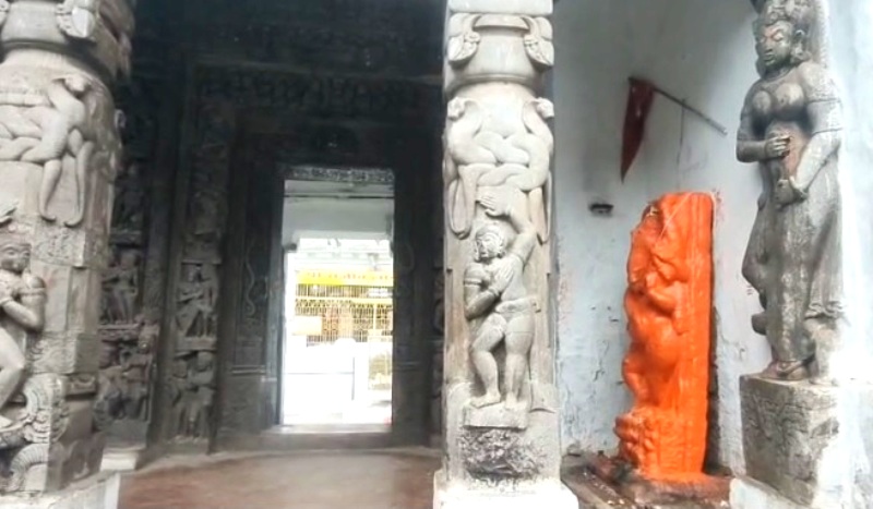 कहा जाता है कि ऐसा करने से भक्तों की सारी मनोकामनाएं पूर्ण हो जाती हैं। मंदिर के प्रवेश द्वार की खासियत उसके जटिल नक्काशीदार स्तंभ हैं जिन पर देवी-देवताओं की आकृतियाँ उकेरी गई हैं। मुख्य द्वार पर अष्टभुजी गणेश जी की प्रतिमा के अतिरिक्त, दुर्गा जी के साथ विष्णु के वराह और नरसिंह अवतारों, गंगा-यमुना और अन्य पौराणिक दृश्यों को भी स्तंभों पर दर्शाया गया है।