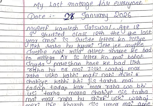 सुसाइड नोट में छात्र ने यह भावुक पंक्तियां भी लिखी हैं कि “जीते जी मुझे न्याय नहीं मिला, शायद मरने के बाद मिलेगा” और संबंधित लोगों के खिलाफ कार्रवाई की मांग की है।