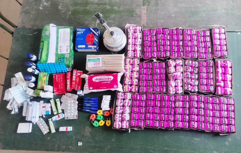 अभियान के दौरान सुबह प्राप्त सूचना के आधार पर बीडीएस टीम ने संदिग्ध क्षेत्र में सघन तलाशी ली। तलाशी के दौरान एक पेड़ के पास पत्थरों के नीचे छिपाए गए संदिग्ध डंप की जानकारी मिली। मौके पर सुरक्षित तरीके से खुदाई करने पर भारी मात्रा में विस्फोटक सामग्री, एक कुकर, मेडिकल टैबलेट, इंजेक्शन, बैंडेज एवं अन्य दवाइयां बरामद की गईं।