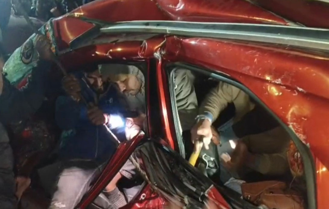 हाईवा-कार की जोरदार भिड़ंत: युवक-युवती की मौत, दो गंभीर
