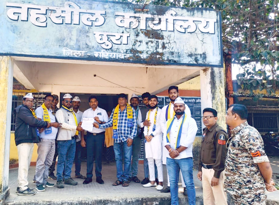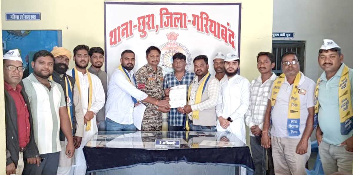 (छत्तीसगढ़ प्रयाग न्यूज) किशन सिन्हा:- नगर पंचायत छुरा में मतदाता सूची से नाम कटवाने के मामले को लेकर राजनीतिक सरगर्मी तेज हो गई है। आम आदमी पार्टी के जिलाध्यक्ष चमन यादव के नेतृत्व में पार्टी पदाधिकारियों ने तहसील कार्यालय छुरा और पुलिस थाना पहुंचकर ज्ञापन सौंपा तथा फर्जी तरीके से फार्म-7 प्रस्तुत कर लगभग 55 मतदाताओं के नाम हटाने की साजिश का आरोप लगाया।
