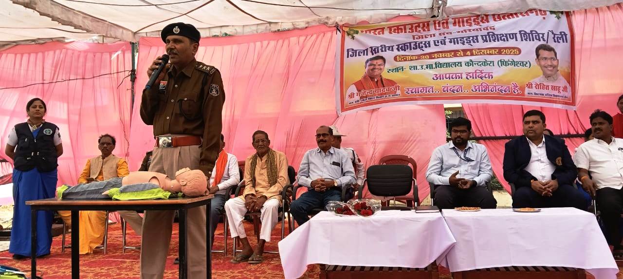 (छत्तीसगढ़ प्रयाग न्यूज) :– गरियाबंद पुलिस के वरिष्ठ अधिकारियों के दिशा-निर्देश एवं मार्गदर्शन में उप पुलिस अधीक्षक लाईन गोपाल वैश्य , जिला स्काउट गाइड के जिला संयोजक रोमन साहू, यातायात प्रभारी सउनि. रामाधार मरकाम एवं टीम के द्वारा थाना राजिम क्षेत्रांतर्गत ग्राम कौंदकेरा में आयोजित जिला स्तरी स्काउट-गाइड के पाँच दिवसीय प्रशिक्षण शिविर में गरियाबंद पुलिस द्वारा एक विशेष जागरूकता कार्यक्रम का आयोजन किया गया।