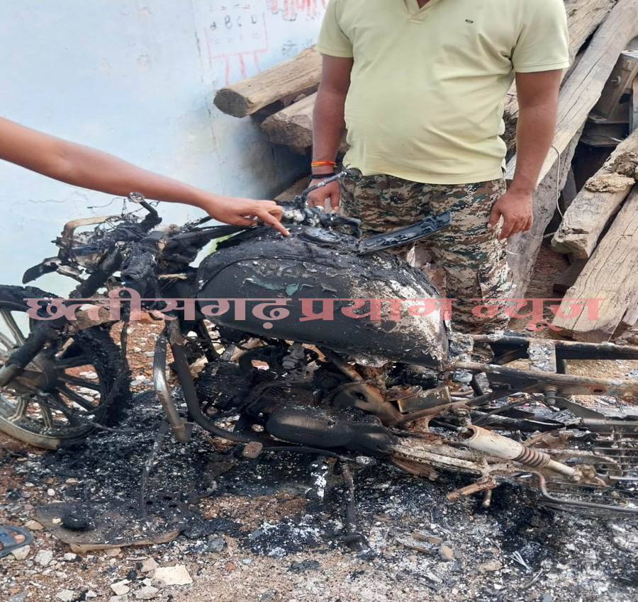 नवापारा ब्रेकिंग: असामाजिक तत्वों का आतंक बढ़ा, घर के बाहर खड़ी बाइक-ठेले को लगाई आग, रोजी-रोटी का जरिया छीना