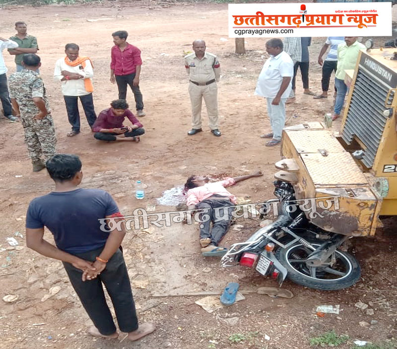 जतमई मंदिर के पास भीषण हादसा: रोड रोलर मशीन से टकराया बाइक सवार, एक की मौत