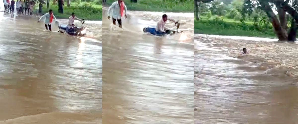 नाला पार करते बाइक समेत बहा युवक सवार, रोकने के बावजूद नहीं माना, लाइव वीडियो आया सामने