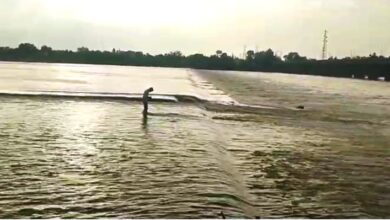 राजिम एनीकेट पर उफनती नदी के बीच युवक ने जोखिम में डाली जान, वीडियो हुआ वायरल, VIDEO