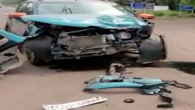 दो कारों में जबरदस्त भिड़ंत: आमने-सामने टकराई कारें