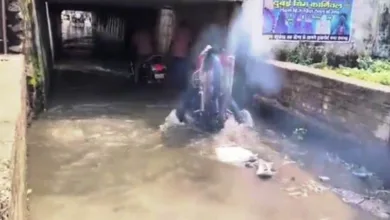 भारी बारिश का कहर: नदी-नाले उफान पर, रेलवे अंडर ब्रिज के गटर में गिरा बाइक सवार VIDEO