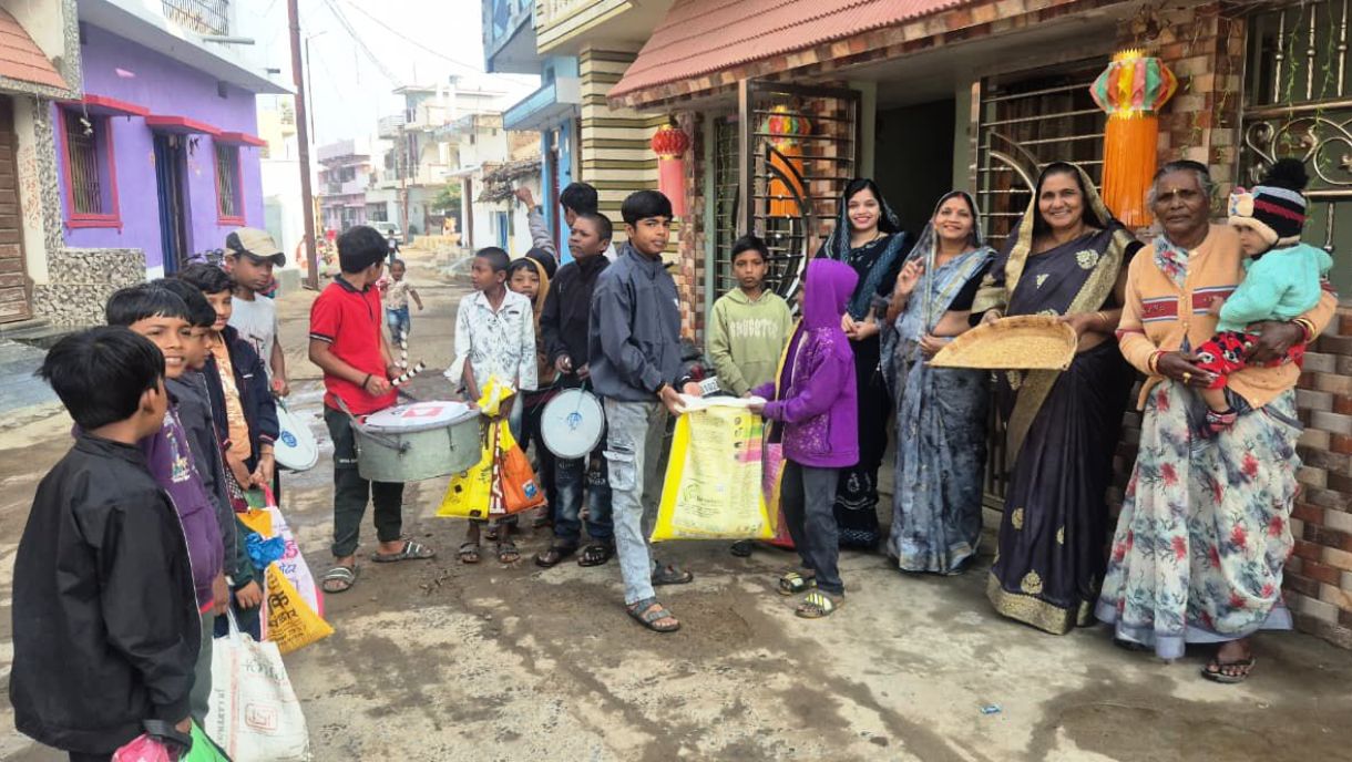 बच्चों ने टोकरी और थैलों में अन्न, धान और दान एकत्र किया। यह दृश्य केवल मांगने का नहीं, बल्कि दान, त्याग और आपसी प्रेम की भावना का सशक्त प्रतीक बन गया। गली-मोहल्लों में बुजुर्गों, महिलाओं और परिवारजनों ने बच्चों को धान, चावल, नकद राशि और मिठाइयाँ देकर उनका उत्साह बढ़ाया और इस लोक-पर्व को श्रद्धा के साथ निभाया।