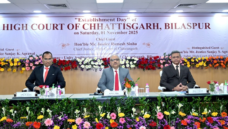 (छत्तीसगढ़ प्रयाग न्यूज) :– छत्तीसगढ़ राज्य गठन के साथ छत्तीसगढ़ उच्च न्यायालय के 25 वर्ष पूर्ण होने पर दिनांक 01 नवंबर 2025 को सुबह 10:30 बजे छत्तीसगढ़ उच्च न्यायालय में स्थापना दिवस समारोह का आयोजन उच्च न्यायालय के यूनिटी सभागार में उत्साह एवं गरिमापूर्वक किया गया। न्यायाधीश रमेश सिन्हा, मुख्य न्यायाधीश के आगमन पश्चात राष्ट्रगान व छत्तीसगढ़ राज्यगीत से कार्यक्रम की शुरुआत हुई।