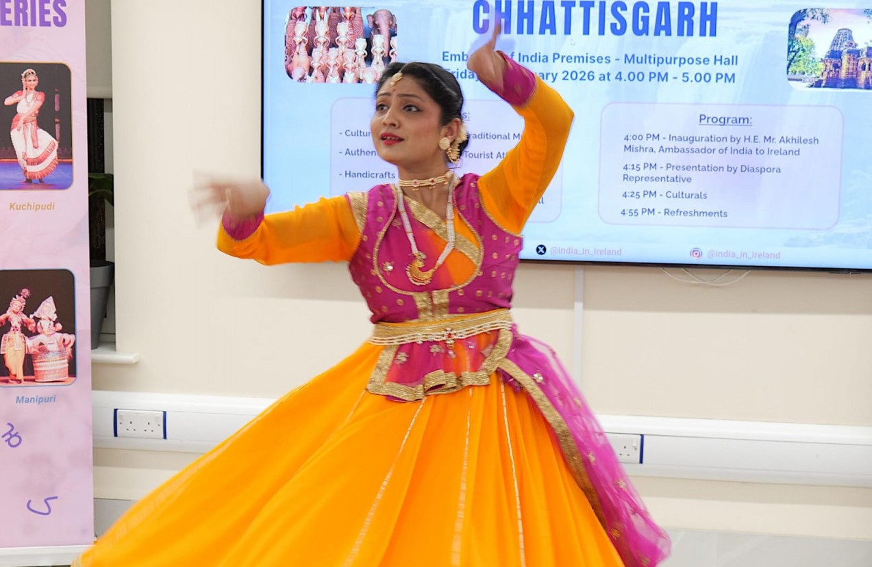 (छत्तीसगढ़ प्रयाग न्यूज) :– आयरलैंड की राजधानी डबलिन में भारत की सांस्कृतिक विविधता की एक सशक्त झलक देखने को मिली, जब स्टेट कल्चरल इवेंट सीरीज़ के तहत भारतीय दूतावास, डबलिन द्वारा छत्तीसगढ़ राज्य पर केंद्रित भव्य सांस्कृतिक आयोजन का सफल आयोजन किया गया। इस कार्यक्रम में आयरलैंड में रह रहे भारतीय समुदाय के सदस्यों ने भी उत्साहपूर्वक सहभागिता की।