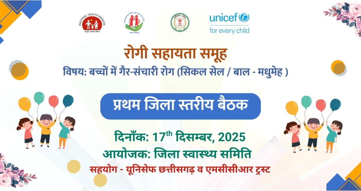 (छत्तीसगढ़ प्रयाग न्यूज) :– गरियाबंद जिले में टाइप-1 डायबिटीज (बाल मधुमेह) से पीड़ित बच्चों और उनके परिवारों के लिए पहली बार एक विशेष “रोगी सहायता समूह बैठक (Patient Support Group)” आयोजित की जा रही है। यह महत्वपूर्ण कार्यक्रम दिनांक 17 दिसंबर 2025 को जिला कलेक्टर की अध्यक्षता में, जिला स्वास्थ्य समिति, UNICEF छत्तीसगढ़ और MCCR के तकनीकी सहयोग से जिला चिकित्सालय में सुबह 10 बजे से किया जाएगा।