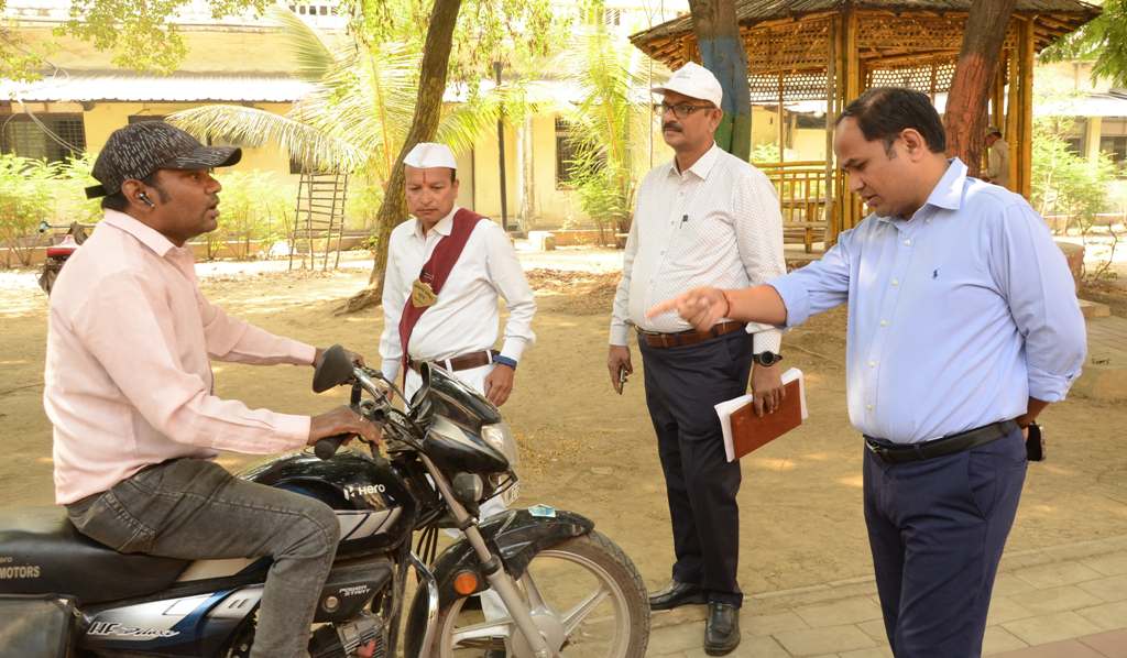 (छत्तीसगढ़ प्रयाग न्यूज) :– रायपुर कलेक्टर डॉ. गौरव सिंह ने सड़क पर यातायात नियमों का उल्लंघन कर रहे दोपहिया वाहन चालकों को रोककर उन्हें समझाइश दी और नियमों का पालन करने की हिदायत दी। कलेक्टर ने बिना हेलमेट पहने, बिना जरूरी कागजात के वाहन चला रहे और कलेक्ट्रेट परिसर में प्रतिबंधित जगह पर गाड़ी चला रहे लोगों को रोककर ट्रैफिक नियमों के प्रति जागरूक किया।