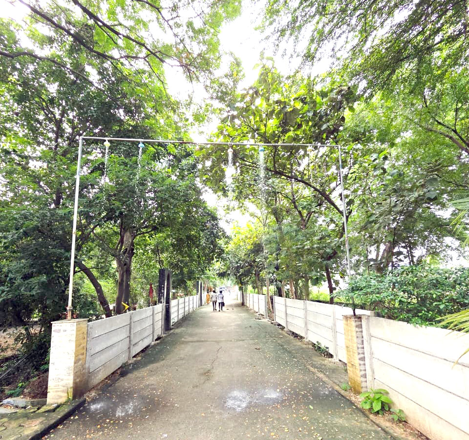 चारों ओर फैली मजबूत बाउंड्रीवाल और हर कोने में खिला हरियाली का संसार यह सब मिलकर इसे किसी बाग की तरह शांत और पवित्र बनाते हैं। यहां बादाम, केला, सीताफल, जाम, आम, कटहल, इमली, करोंदा, गंगाइमली और जामुन जैसे फलदार वृक्ष जीवन की हर ऋतु का प्रतीक बनकर खड़े हैं।