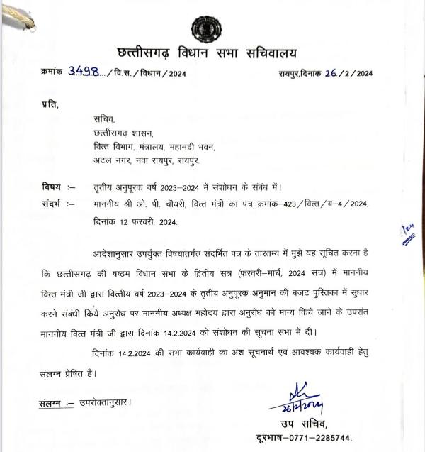 इसके पश्चात विधानसभा में संशोधन सूचना प्रस्तुत की गई और 14 फरवरी 2024 को दोपहर 12:03 बजे सत्र के दौरान उक्त संशोधन सूचना को पढ़ा गया। संशोधन सूचना के अनुरूप “13.89 लाख” का संशोधन भी उसी समय कर दिया गया। संशोधन सूचना से संबंधित सभी दस्तावेजों का अवलोकन कोई भी इच्छुक व्यक्ति कर सकता है। साथ ही, इस संबंध में विधानसभा की लाइब्रेरी में उपलब्ध वीडियो भी देखा जा सकता है।