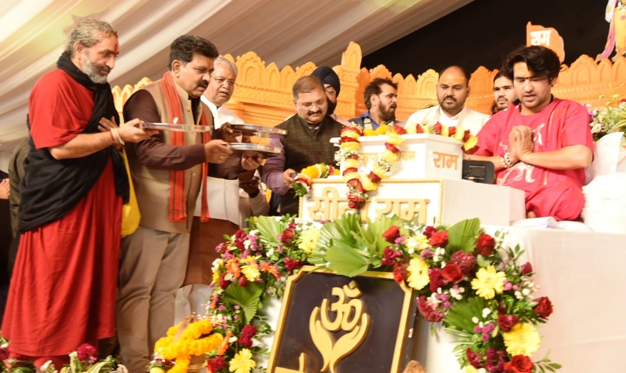 (छत्तीसगढ़ प्रयाग न्यूज) :– जयंती स्टेडियम में आयोजित पांच दिवसीय हनुमंत कथा के चौथे दिवस रविवार को बागेश्वर धाम के पीठाधीश्वर पं. धीरेंद्र शास्त्री की कथा में छत्तीसगढ़ के उप मुख्यमंत्री विजय शर्मा शामिल हुए।