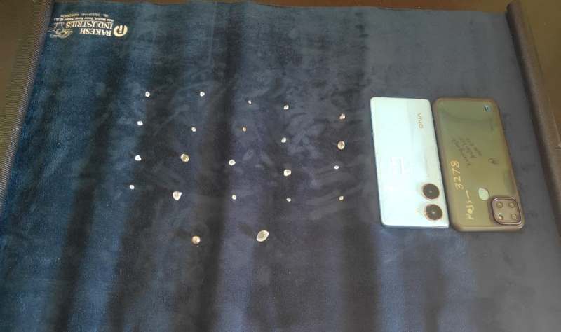 पुलिस द्वारा पूछताछ में दोनों ने अपना नाम खीर सिंग मांझी उम्र 30 वर्ष और हरी शंकर नेताम उम्र 27 वर्ष बताया। दोनों की तलाशी लेने पर उनके कब्जे से बहुमूल्य चमकीला हीरा जैसा खनिज पदार्थ (कुल 22 नग, कीमती ₹2,30,000/रूपये) 02 मोबाइल फोन, मोटर साइकिल क्रमांक CG 04 KB 0696 कुल कीमती 35,000/रूपये कुल जुमला कीमती 2,65,000/ रुपये बरामद किया गया। बरामद सामग्री की कुल अनुमानित कीमत लगभग 04 लाख रुपए आँकी गई है।