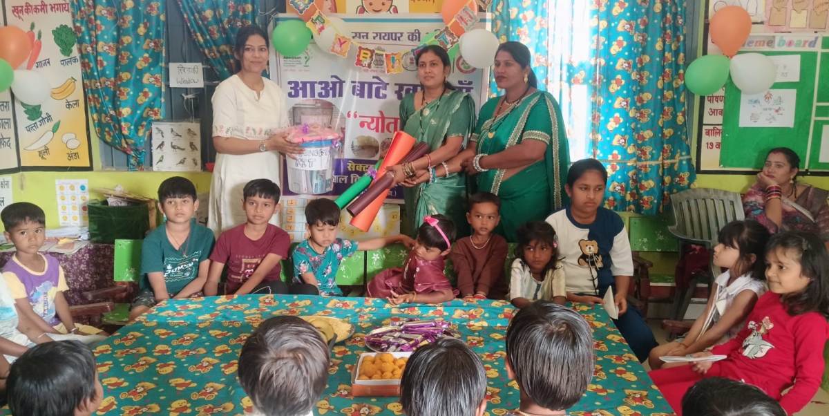 इसी क्रम में आज महिला एवं बाल विकास विभाग की सुपरवाइजर प्रीति वर्मा ने आंगनबाड़ी केंद्र क्रमांक 02 ग्राम अकोलीखुर्द आरंग एवं लेक्चर सुश्री दिव्या त्रिपाठी ने शासकीय हायर सेकेंडरी स्कूल बोरियाकला में जन्मदिवस के अवसर पर बच्चों के साथ केक काटकर, फल और पौष्टिक आहार वितरित कर इस दिन को विशेष बनाया।