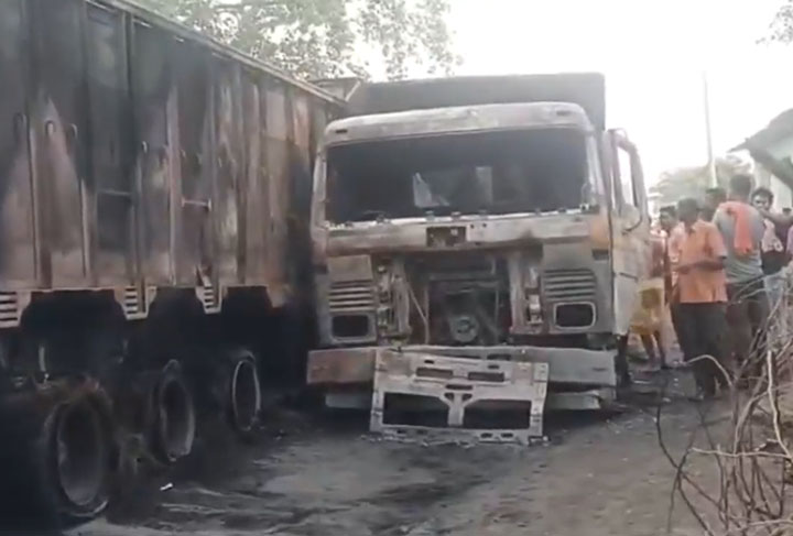दो ट्रकों के बीच टक्कर के बाद लगी आग, ड्राइवर की जिंदा जलकर मौत, दूसरा ट्रक चालक घायल