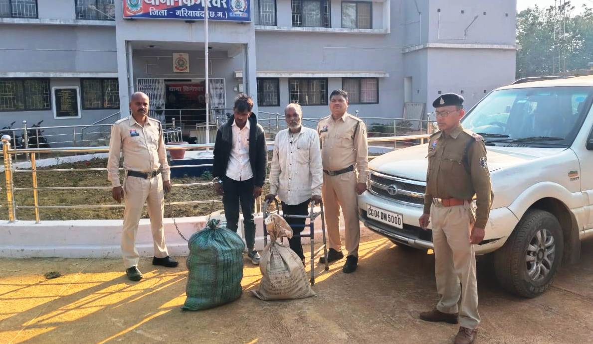 (छत्तीसगढ़ प्रयाग न्यूज) :– “ऑपरेशन निश्चय” के तहत गरियाबंद पुलिस को बड़ी सफलता मिली है। पुलिस ने अवैध मादक पदार्थ गांजा की तस्करी करते 5 आरोपियों को गिरफ्तार किया है। जिसमें दो आरोपी नाबालिग है। पुलिस ने आरोपियों के कब्जे से 19 किलो 400 ग्राम गांजा जब्त किया है। उक्त कार्रवाई फिंगेश्वर पुलिस द्वारा की गई है।