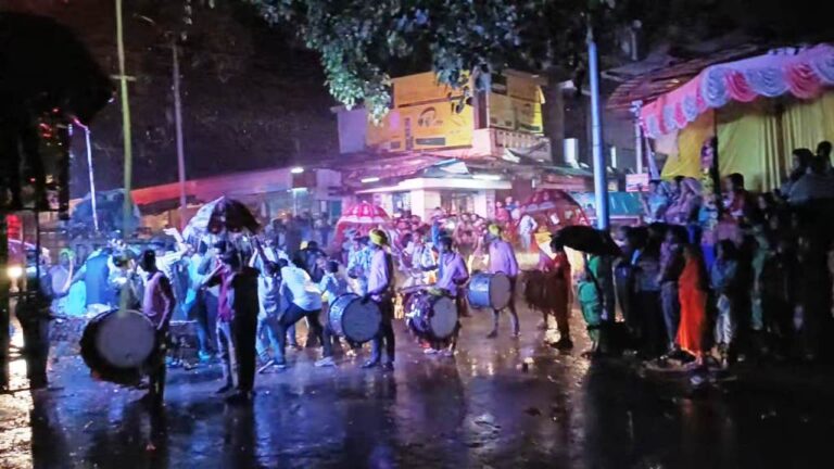 (छत्तीसगढ़ प्रयाग न्यूज) किशन सिन्हा :– बीते रविवार को छुरा नगर गणेशोत्सव के रंग में पूरी तरह सराबोर नजर आया। दिनभर चली धार्मिक गतिविधियों के बाद देर रात तक गणपति बप्पा की विसर्जन यात्रा अद्वितीय दृश्य बन गई। आसमान से मूसलाधार बारिश हो रही थी, सड़कों पर पानी नदीनुमा बह रहा था, लेकिन श्रद्धालुओं का उत्साह और … Continue reading बारिश में भी नहीं थमा श्रद्धालुओं का उत्साह, छुरा में मध्यरात्रि तक चलता रहा गणेश विसर्जन