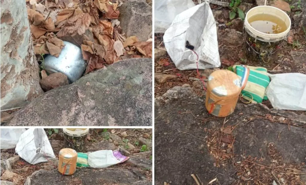 इस दौरान ग्राम गरीबा के समीप जंगल में प्रतिबंधित माओवादी संगठन सीपीआई माओवादी के नक्सलियों का डेरा दिखाई दिया। अपनी ओर पुलिस पार्टी को आता देख नक्सली जंगल का लाभ उठाकर भाग गये। मौके पर पहुंचकर पुलिस बल द्वारा क्षेत्र का सघन सर्च किया गया जहां नक्सलियों द्वारा आमजन एवं सुरक्षा बलों को जान से मारने की नियत से लगाये गयेे तीन आईईडी (बम) दिखाई दिये जिसे पुलिस बल के बीडीएस टीम द्वारा मौके पर नष्ट कर माओवादियों के षडयंत्र को विफल किया गया।