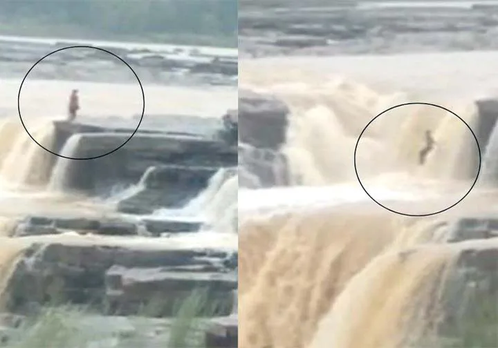 चित्रकोट जलप्रपात से युवती ने लगाई छलांग, देखिए वीडियो