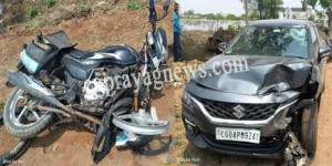 (छत्तीसगढ़ प्रयाग न्यूज) :- नवापारा क्षेत्र से बड़ी खबर सामने आ रही है, जहां एक कार और बाइक की आमने-सामने जोरदार भिड़ंत हो गई है। हादसे में बाइक चालक के सिर और शरीर के अन्य हिस्सों में गंभीर चोट आई है, जिसे इलाज हेतु अस्पताल में भर्ती किया गया है। मामला गोबरा नवापारा थाना क्षेत्र … Continue reading नवापारा ब्रेकिंग: कार और बाइक की जोरदार भिड़ंत, बाइक चालक की हालत गंभीर, 26 अप्रैल को हुई थी शादी, वीडियो