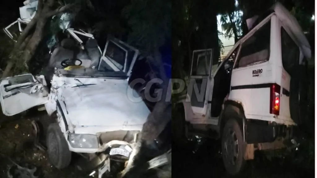 अभनपुर में भीषण सड़क हादसा : तेज रफ्तार बोलेरो पेड़ से टकराई, गाड़ी के उड़े परखच्चे