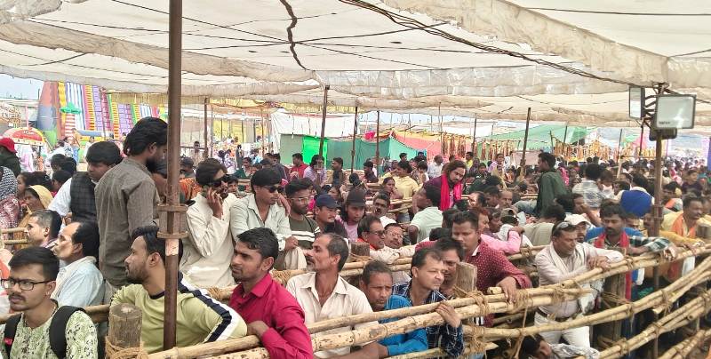 मंदिर के सामने प्रशासन द्वारा तीन से चार कतारों में बैरिकेड्स लगाए गए थे। बैरिकेड्स भरने के बाद श्रद्धालुओं की लाइन दूर तक फैल गई। चिलचिलाती धूप में भी श्रद्धालु अडिग भाव से खड़े रहे। प्रशासन ने धूप से राहत देने के लिए पंडाल की व्यवस्था की थी, लेकिन बढ़ती भीड़ के कारण कई श्रद्धालुओं को खुले में ही इंतजार करना पड़ा। महिलाओं और पुरुषों के लिए अलग-अलग कतारें बनाई गई थीं, जिनमें महिलाओं की संख्या अधिक देखने को मिली।
