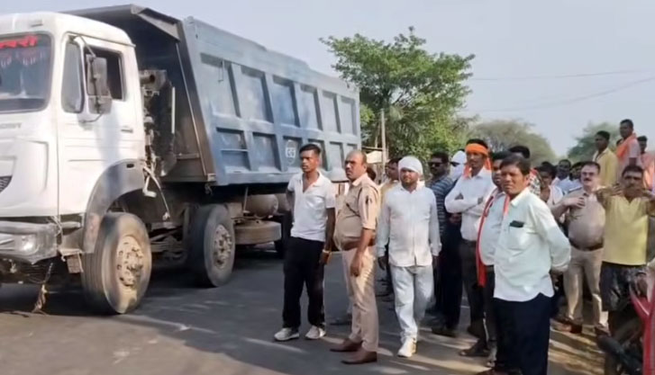 तेज रफ्तार हाइवा ने 4 साल के मासूम को कुचला, मौके पर दर्दनाक मौत, गुस्साए ग्रामीणों ने किया चक्काजाम
