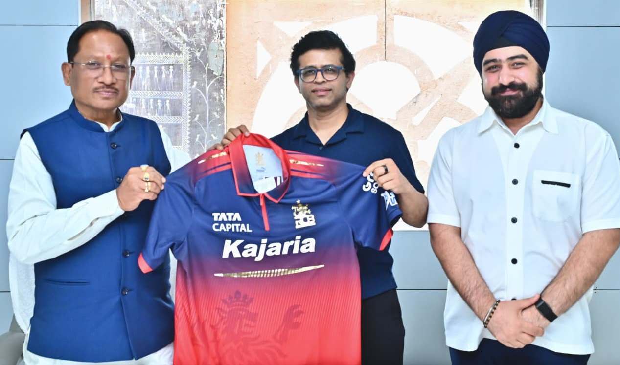 रॉयल चौलेंजर्स बेंगलुरु (RCB) की ओर से मुख्यमंत्री विष्णु देव साय को टीम की आधिकारिक जर्सी भेंट कर रायपुर में प्रस्तावित इंडियन प्रीमियर लीग (IPL) मैचों के आयोजन के लिए औपचारिक आमंत्रण दिया गया। इस अवसर पर RCB के वाइस प्रेसिडेंट राजेश मेनन और भारतीय क्रिकेट कंट्रोल बोर्ड (BCCI) के संयुक्त सचिव प्रभतेज सिंह भाटिया भी उपस्थित रहे।