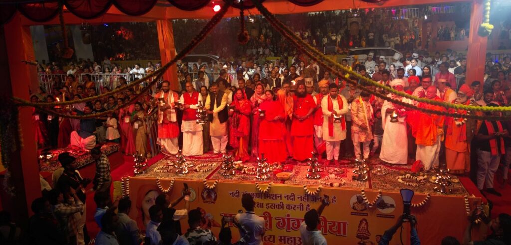 जबलपुर से पधारी साध्वी प्रज्ञा भारती के सानिध्य में ग्यारह पंडितों ने वैदिक मंत्रोच्चार के बीच महाआरती सम्पन्न कराई। आरती घाट पर ज्यों ही आरती प्रारंभ हुई, शंखनाद, कपूर की सुगंध, दीपों की लौ से पूरा परिसर भक्तिरस में डूब गया। एक साथ प्रज्वलित आरती दीप और वैदिक मंत्रों की गूंज ने त्रिवेणी संगम को अलौकिक बना दिया। उपस्थित श्रद्धालु इस दिव्य दृश्य के साक्षी बने।