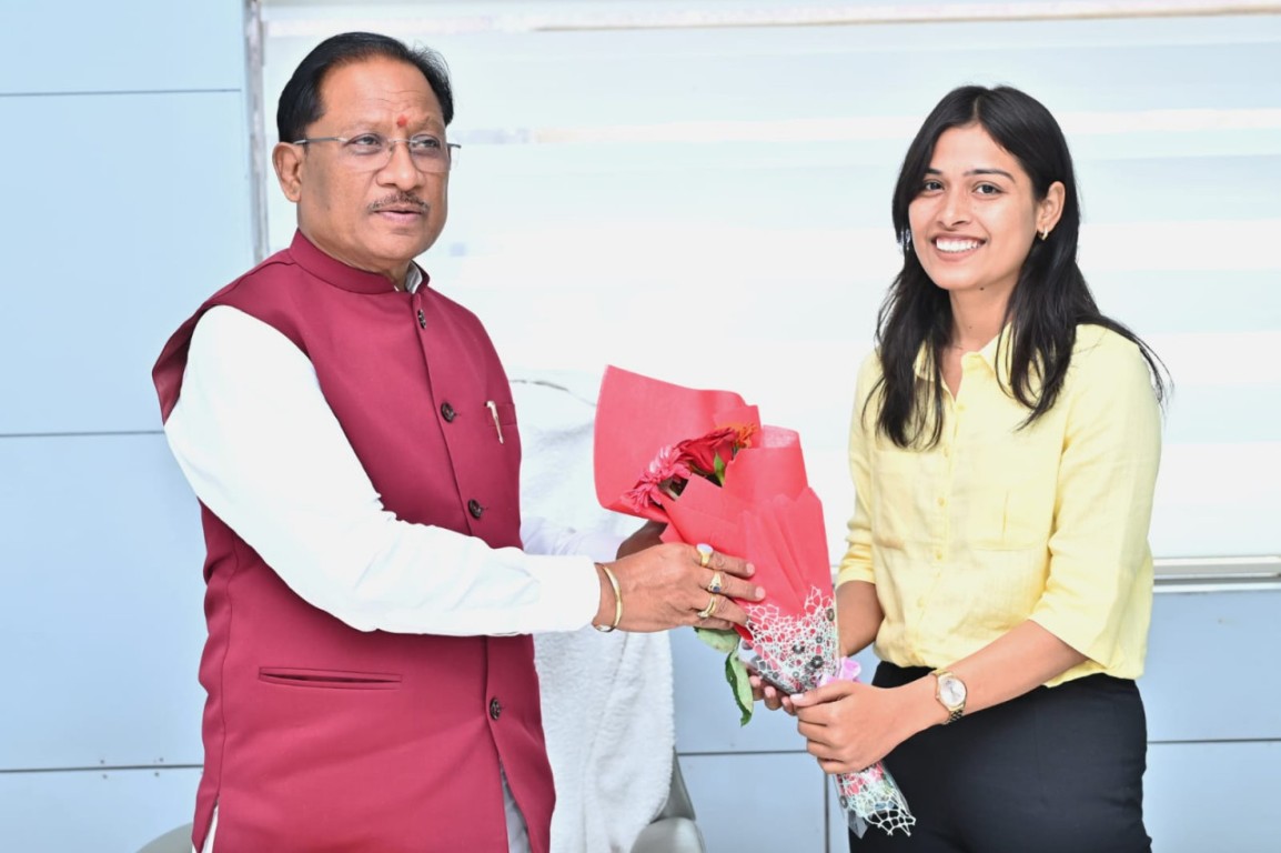 (छत्तीसगढ़ प्रयाग न्यूज) :– मुख्यमंत्री विष्णुदेव साय ने मंत्रालय महानदी भवन स्थित अपने कार्यालय में सीडीएस परीक्षा में ऑल इंडिया चौथा रैंक प्राप्त करने वाली मुंगेली की सुश्री सुप्रिया को सम्मानित किया। उन्होंने सुप्रिया और उनके परिजनों को पुष्पगुच्छ भेंटकर बधाई एवं शुभकामनाएं दी और मुँह मीठा कराया।