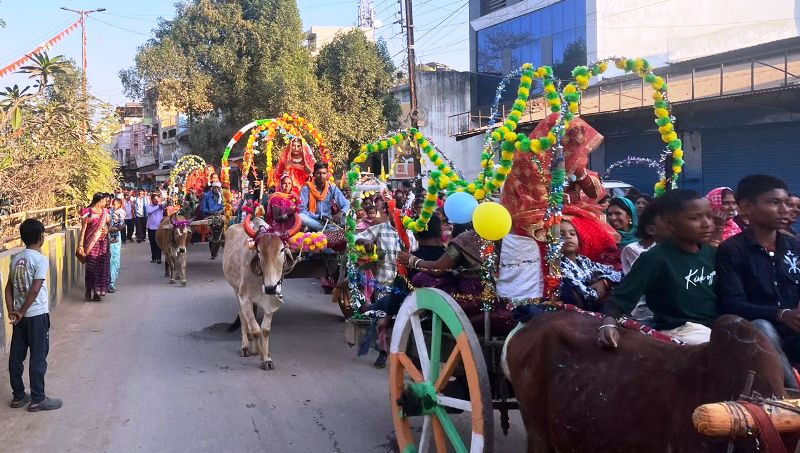 (छत्तीसगढ़ प्रयाग न्यूज) :– प्रति वर्षानुसार इस वर्ष भी सालासर सुन्दरकाण्ड हनुमान चालीसा जनकल्याण समिति द्वारा बहुत ही निर्धन परिवार की 11 बेटियो का सामूहिक आदर्श विवाह धूमधाम से सम्पन्न हुआ। इस दौरान पारंपरिक रूप से बैलगाड़ी में निकली बारात आकर्षण का केंद्र रही। लोगों और कई समाज ने विभिन्न जगहों पर इस बारात का भव्य स्वागत किया गया।
