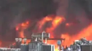 (छत्तीसगढ़ प्रयाग न्यूज):- CSPDCL रायपुर के ट्रांसफॉर्मर गोदाम में भीषण आग लग गई है। दूर-दूर तक आसमान में केवल धुएं का गुबार दिखाई दे रहा है। पुलिस ने आसपास के रास्ते को ब्लॉक कर दिया है। ये ट्रांसफॉर्मर गोदाम गुढ़ियारी थाना के कोटा इलाके में है। तेज हवा के चलते आग पर काबू पाना मुश्किल … Continue reading BREAKING : रायपुर के ट्रांसफॉर्मर गोदाम में लगी भीषण आग, ट्रांसफॉर्मर हो रहे ब्लॉस्ट, घर दफ्तरों को कराया जा रहा खाली, देखिए वीडियो …