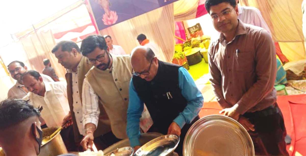 राजिम भक्तिन माता भोग भंडारा में विधायक-कलेक्टर ने किया प्रसाद का वितरण, दक्षिण भारत का पुलियारम प्रसाद रहा विशेष