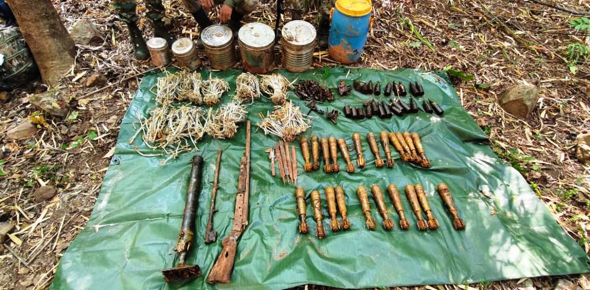 तलाशी के दौरान पुलिस को 01 नग भरमार बंदूक, 01 नग कंपनी निर्मित मोर्टार, 22 नग मोर्टार सेल, 150 नग डेटोनेटर, 18 नग तीर बम एवं अन्य विस्फोटक सामग्री बरामद हुई है। पुलिस द्वारा सभी सामग्री को विधिवत जब्त कर लिया गया है। सुरक्षा बलों की इस कार्रवाई से नक्सलियों की बड़ी साजिश नाकाम हो गई है।