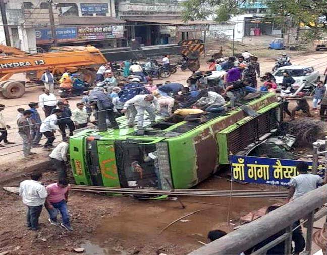 स्टेयरिंग फेल होने से पलटी यात्री बस : 8 यात्री घायल