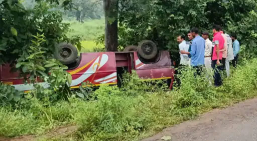 स्टेयरिंग फेल होने से यात्री बस पलटी, 4 साल की बच्ची की मौत, तीन गंभीर
