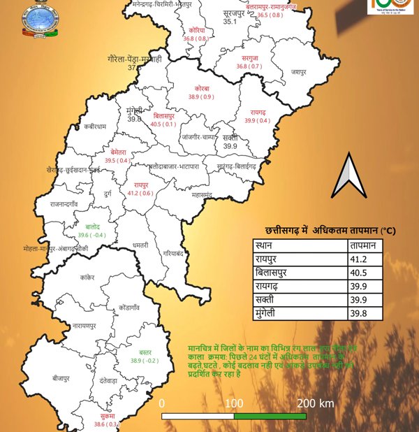 (छत्तीसगढ़ प्रयाग न्यूज) :– छत्तीसगढ़ में गर्मी लगातार तेज होती जा रही है और आने वाले दिनों में हालात और ज्यादा गंभीर हो सकते हैं। India Meteorological Department रायपुर केंद्र के अनुसार प्रदेश में अगले 3 से 4 दिनों के भीतर अधिकतम तापमान में 3 से 4 डिग्री सेल्सियस तक बढ़ोतरी होने की संभावना है।