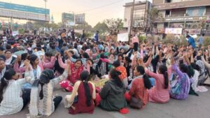 सेवा सुरक्षा की मांग को लेकर रायपुर NH में चक्का जाम, अभिभावकों ने कहा चुनाव का करेंगे बहिष्कार