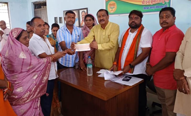 इसी क्रम में भाजयुमो के युवा साथी नितुल देवांगन की कुछ महीनों पहले एक दुर्घटना में निधन हो गया था। इस पर विधायक श्री साहू ने मृतक के परिवार जनों को आर्थिक सहयोग राशि शासन से दिलाने आश्वासन दिया था। जिसे पुरा करते हुए उनके परिजनों को 2 लाख रुपए की आर्थिक सहायता राशि का चेक प्रदान किया।