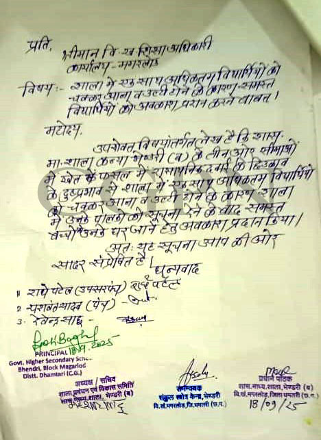 (छत्तीसगढ़ प्रयाग न्यूज) :– राजिम क्षेत्र से एक बड़ी खबर आ रही है, जहां स्कूली बच्चों को अचानक चक्कर आने और उल्टी होने लगी। उनकी तबीयत बिगड़ती देख स्कूल प्रबंधन ने उन्हें तुरंत छुट्टी दे दी। बताया जा रहा है कि खेतों में रासायनिक कीटनाशकों के छिड़काव से बच्चे प्रभावित हुए हैं। पूरी घटना मगरलोड ब्लॉक के भेण्डरी गांव की है।