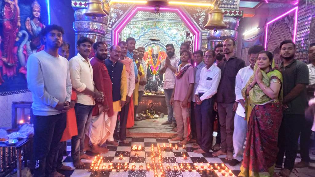 नवापारा के माँ काली मंदिर में महानिशीथकाल में हुई विशेष पूजा, 108 दीपों की रोशनी से जगमगाया मंदिर प्रांगण