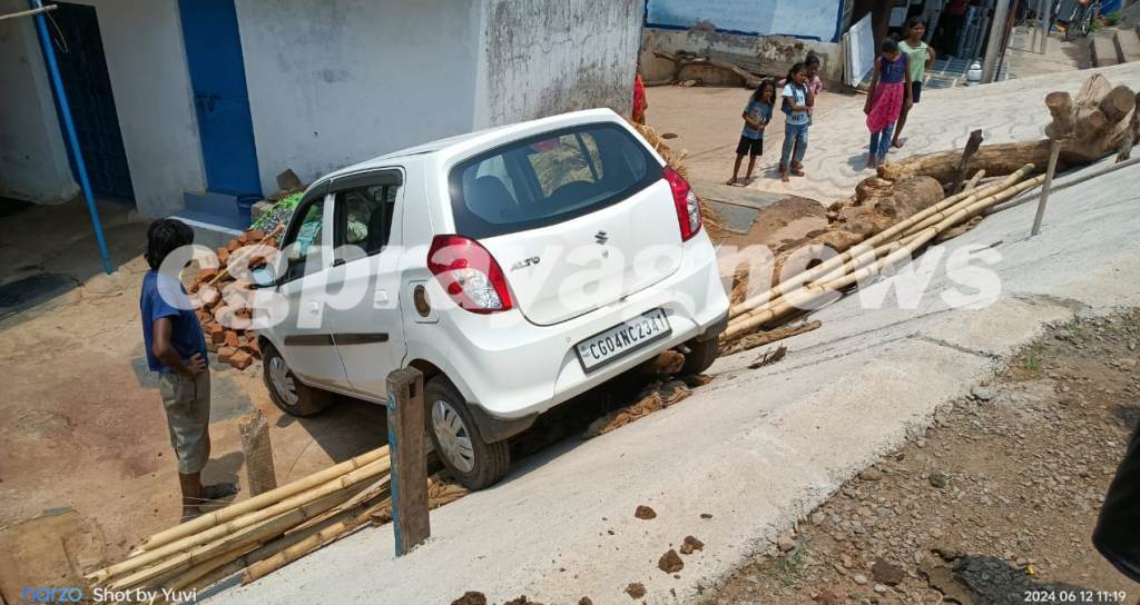 नवापारा ब्रेकिंग: अनियंत्रित होकर कार गड्ढे में घुसी, 5 लोग थे सवार, बैरिकेड नहीं होने से हुआ हादसा