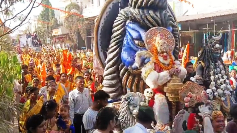 शोभायात्रा में आगे चलते 7 सफेद घोड़े और 7 विशाल झंडे ऐसा दृश्य प्रस्तुत कर रहे थे कि मानो धर्म की विजय यात्रा प्रारंभ हो चुकी हो। यात्रा में राउत नाचा, शिव तांडव व अघोरी नृत्य, विशालकाय उड़ीसा ढोल-मंजीरा टोली, बस्तर का पारंपरिक मुरिया नृत्य, रंगोली कलाकार, गायत्री परिवार की भजन मंडली, रथ पर राधा किशोरी जी, राधाकृष्ण एवं शिव–पार्वती की झांकी ने संस्कृति एवं आस्था का ऐसा समागम प्रस्तुत किया कि पूरा नगर धर्ममय वातावरण में डूब गया।