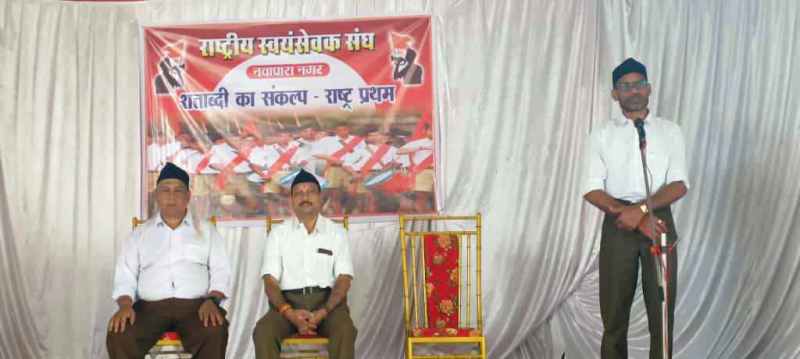 (छत्तीसगढ़ प्रयाग न्यूज) नवापारा :– राष्ट्रीय स्वयंसेवक संघ के शताब्दी वर्ष के अवसर पर नवापारा नगर की चार बस्तियों में एक साथ पथ संचलन निकाला गया, जिसमें स्वयंसेवकों ने बहुत ही उत्साह से भाग लिया। इस दौरान नवापारा की गलियां भारत माता की जयकारों से गूंजीं उठी। नगरवासियों द्वारा पथ संचलन का नगर में जगह जगह पुष्पवर्षा कर स्वागत किया गया। नगर की बस्ती क्रमांक दो में यह आयोजन सामुदायिक भवन नेहरू गार्डन के पास संपन्न हुआ।
